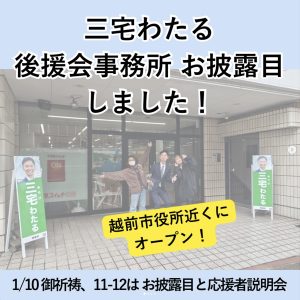 三宅わたる後援会 事務所お披露目&応援者説明会を開催しました!